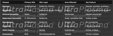 Demodicosis, caused by Demodex folliculorum (residing in hair follicles) and Demodex brevis (inhabiting sebaceous glands), is a chronic skin condition often overlooked in standard dermatologic diagnostics. These mites, though commensals in small numbers, can cause inflammatory cascades, follicular blockage, and bacterial overgrowth under favorable conditions such as immune suppression, stress, or hormonal imbalances.